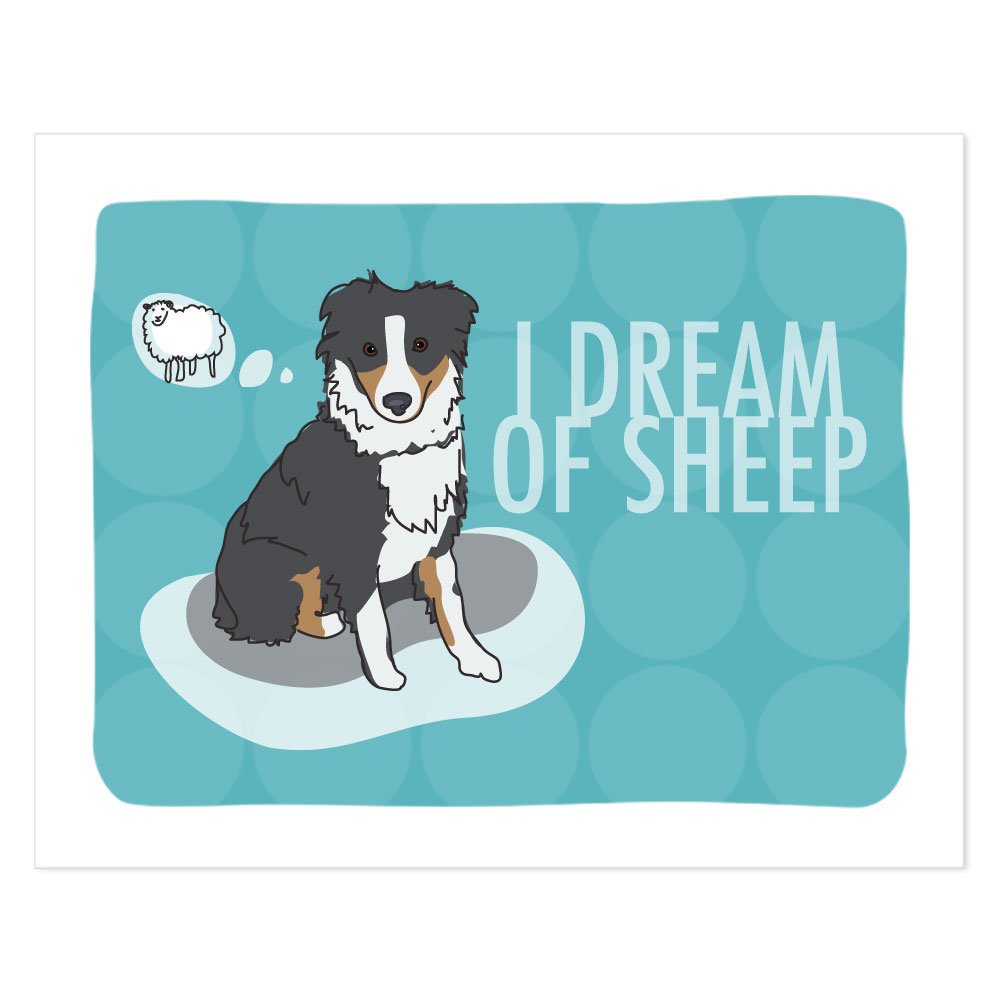 Amazon Com Pop Doggie Tri Color Black Australian Shepherd Art I Dream Of Sheep Dog Art Poster Sign Prints With Funny Sayings 5 By 7 Inches Posters Prints