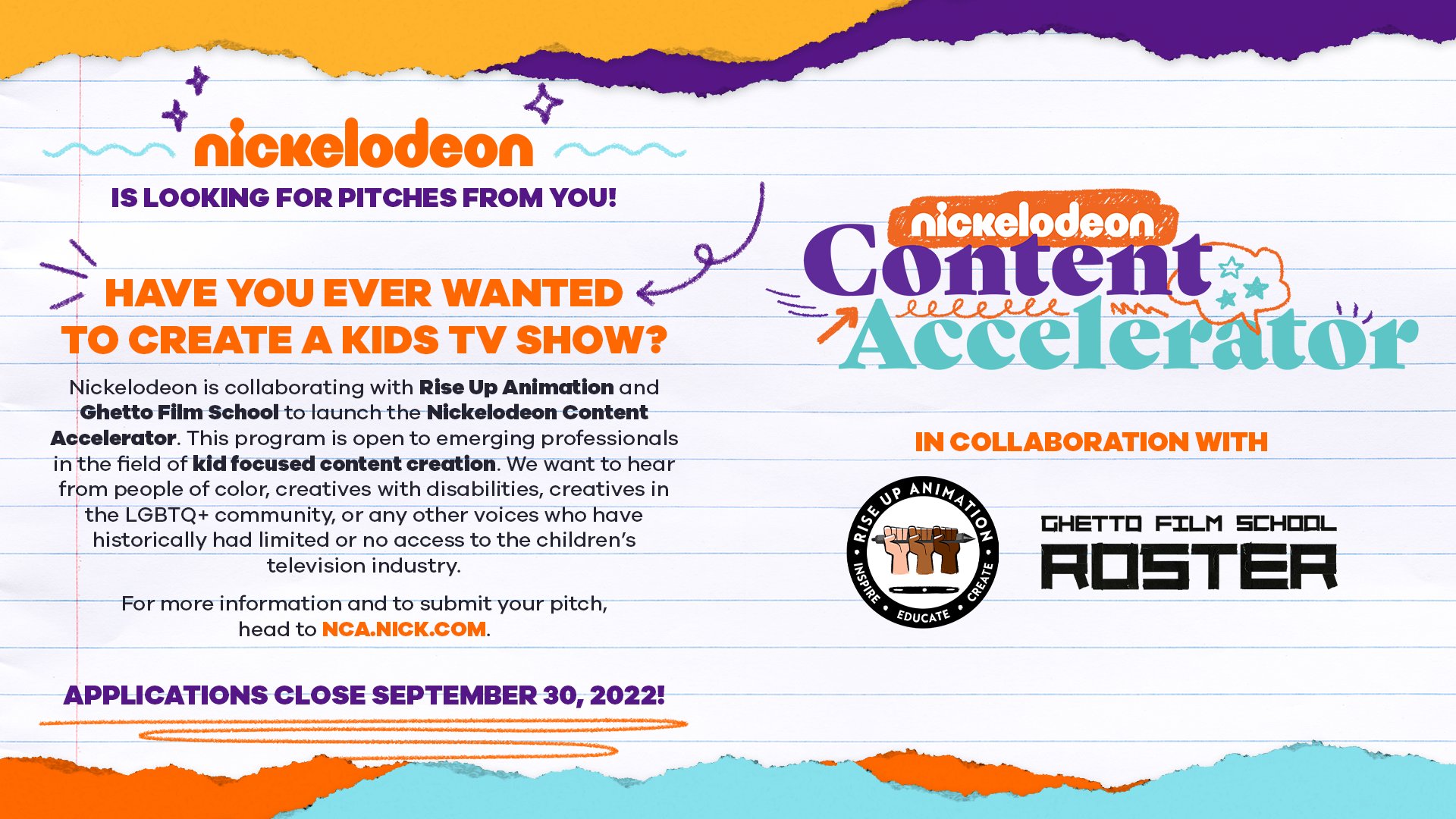 Nickelodeon Animation On Twitter Have You Ever Wanted To Create A Kids Tv Show Have Stories To Tell We Want To Help You Share Them Introducing Our Nickelodeon Content Accelerator Https T Co Avkujbyonr