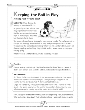 Keeping The Ball In Play Moving Past Writer S Block Printable Lesson Plans And Ideas
